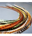 100 plumes naturelles fines en majorité avec quelques plumes de largeurs variées, dans un assortiment de différents tons de la gamme Sunset